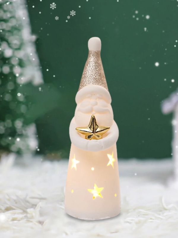 This ceramic Santa ornament features star detail and an LED light. Batteries are included.