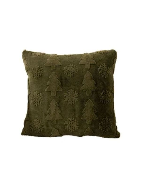 Christmas Scatter Cover Plush Trees Olive Green 45x45cm