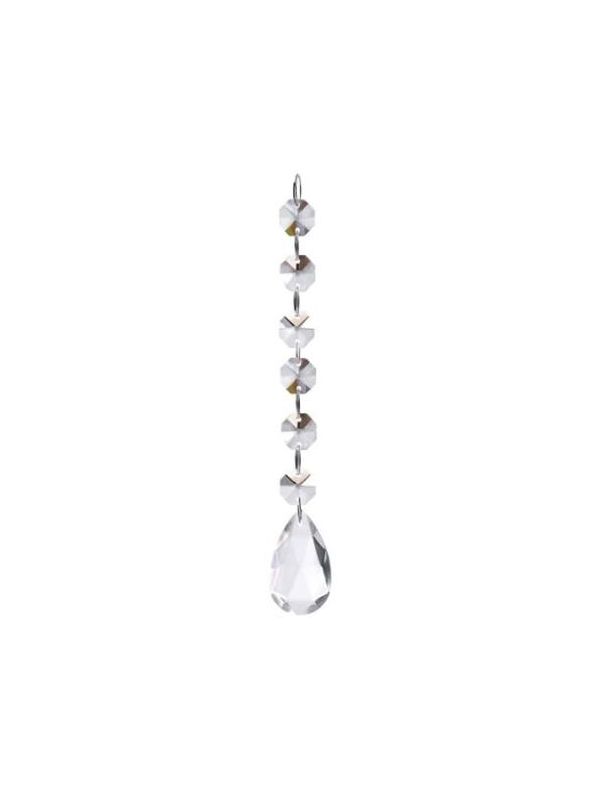 This clear crystal glass chandelier long drop features six octagonal beads and one teardrop bead. Single unit.