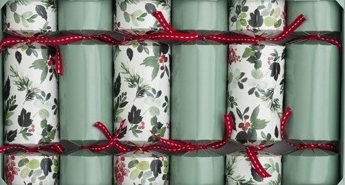 Elegant holly print design for a festive, refined table setting. Each cracker includes a gift, hat, and joke — perfect for celebrating in style.