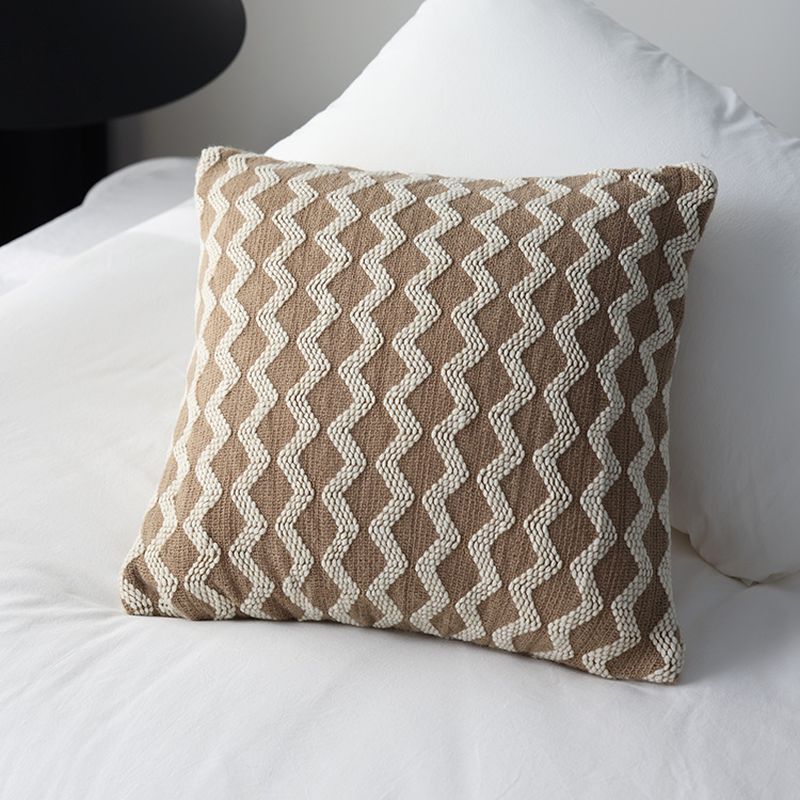Knitted Zig Zag Cushion Mocha & Ivory 45x45cm