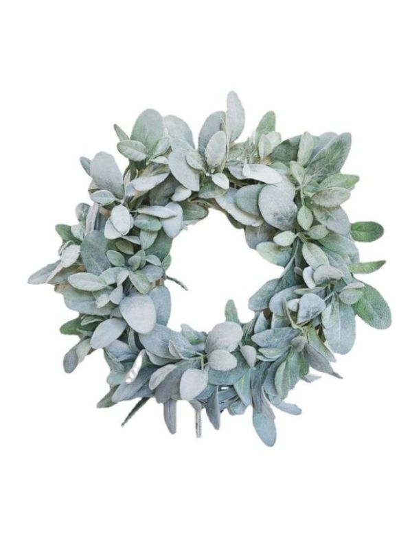 A beautiful mix of imitation lamb’s ear leaf featuring grey-green leaves with a flocked texture on a natural rattan frame, this wreath brings natural elegance to any space. Ideal for doors, walls, or holiday displays.