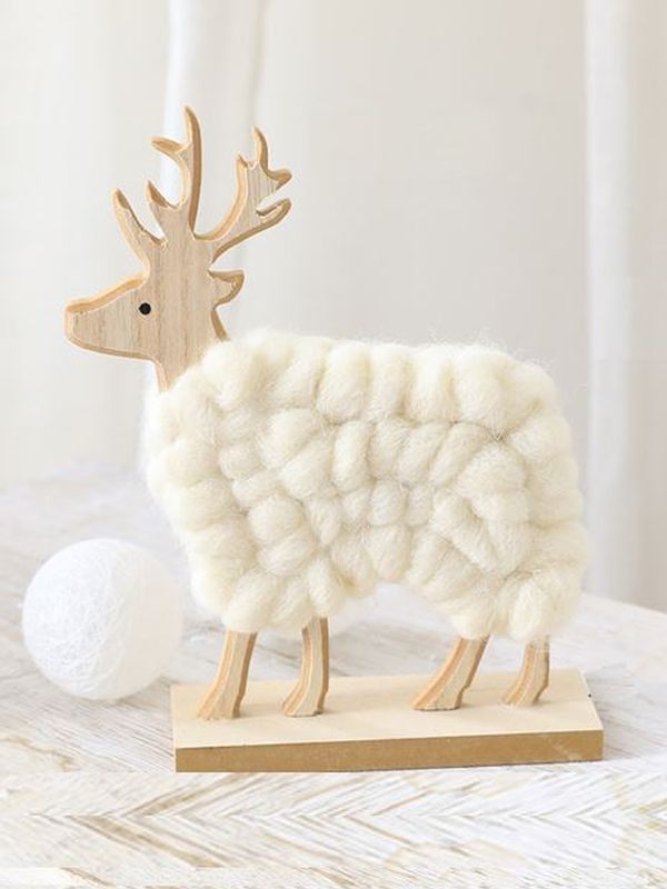 This beautifully crafted Nordic-style wooden reindeer is finished with a plush woollen coat, adding warmth and texture to your festive décor.