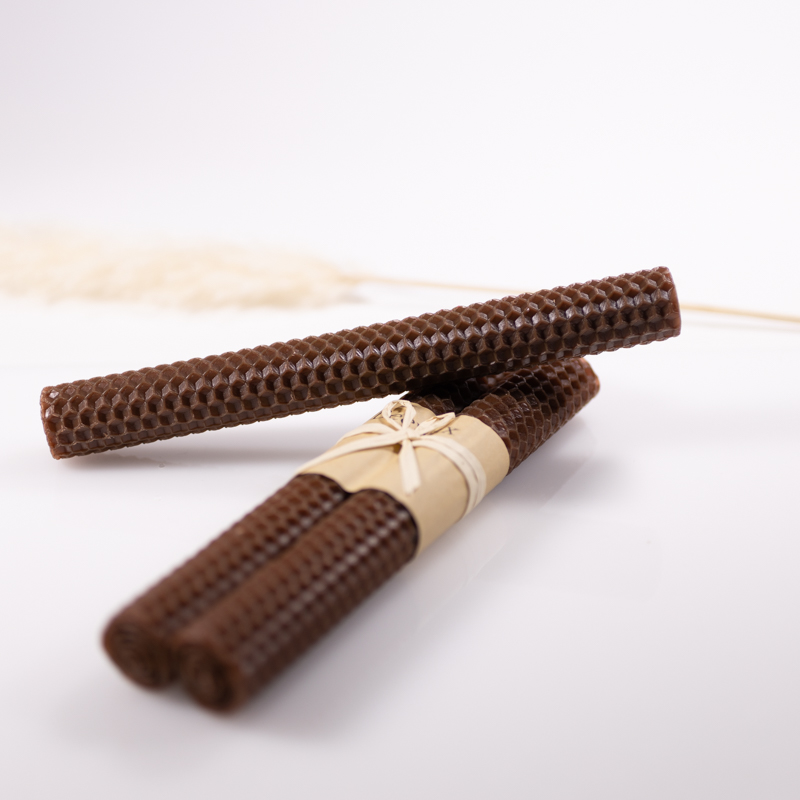 These textured candles are sold in a pair of two and hand-rolled from patterned wax sheets. Contains beeswax and soy wax.