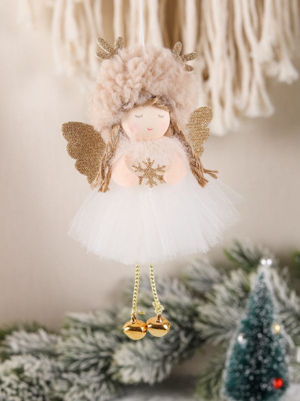 This beautifully detailed Christmas angel pendant features burlap detail and gold bells.
