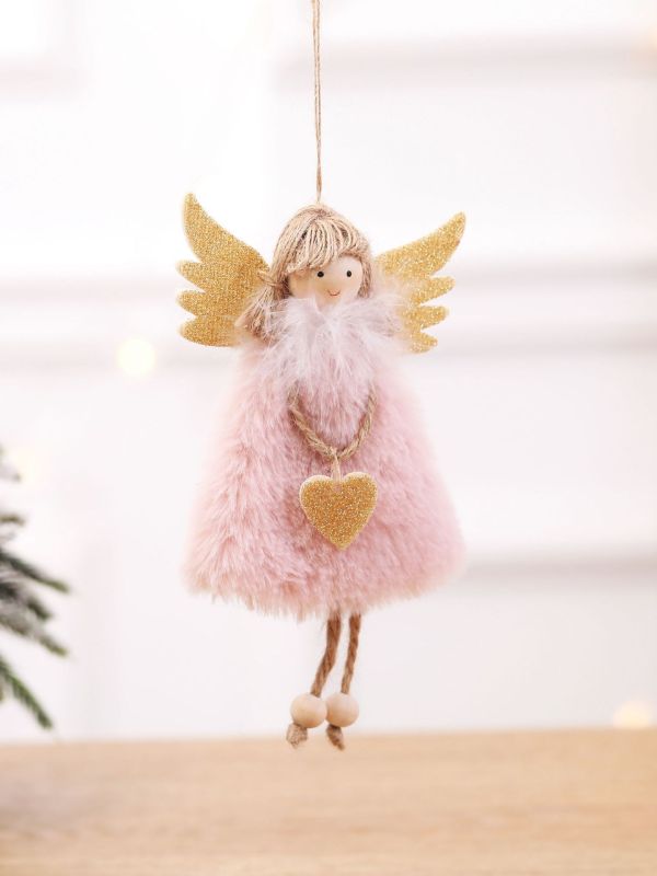 This beautifully detailed Christmas angel pendant features burlap and wood bead detail.