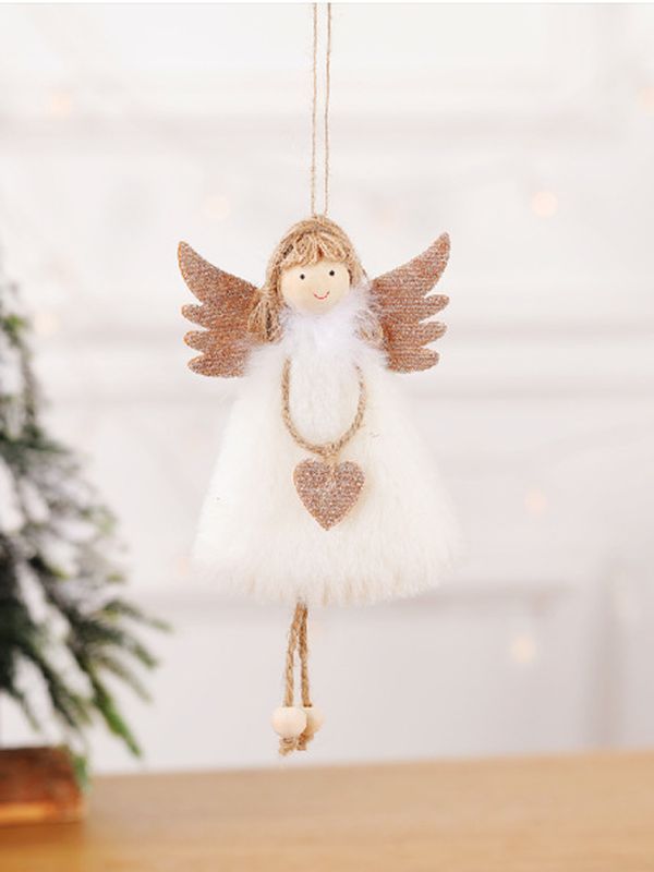 This beautifully detailed Christmas angel pendant features burlap and wood bead detail.