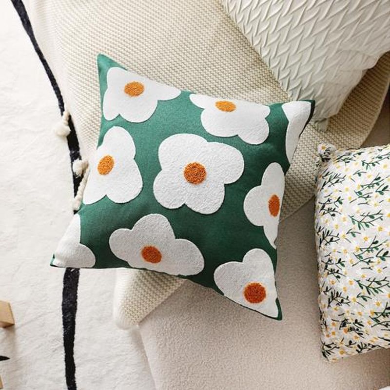 This luxuriously textured cushion features tufted Scandi-style poppy flowers. The cover is made from cotton canvas and closes with a zip. The inner cushion is included. This item is ready to use and makes a great gift, too.
