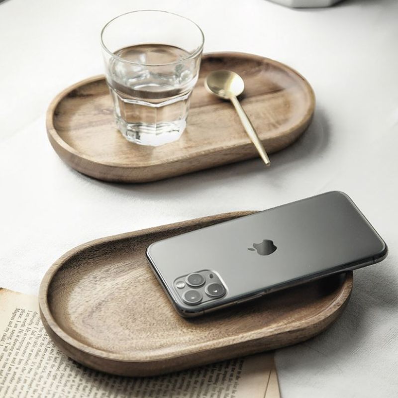This oval-shaped side plate is made from solid Acacia wood and is suitable for serving food or storing and displaying trinkets.