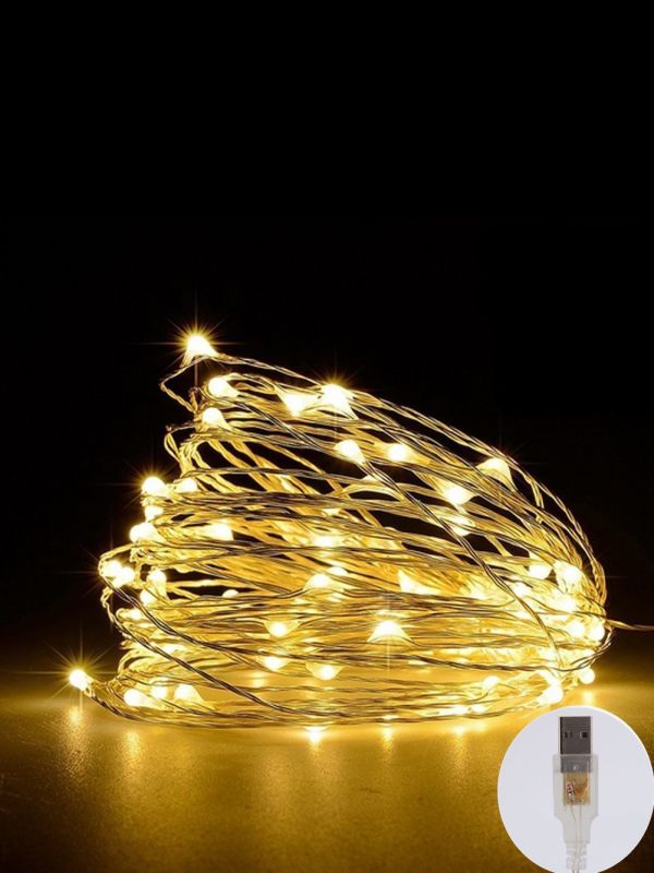These 10-meter silver wire light strings come with warm white lights and a battery box for 3 x AA batteries. Batteries are not included.